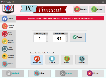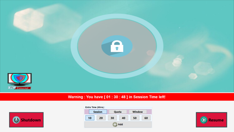 Easily end PC usage with a Custom Lockscreen, or with your PCs built-in PC Lock, Log Off & Shutdown.